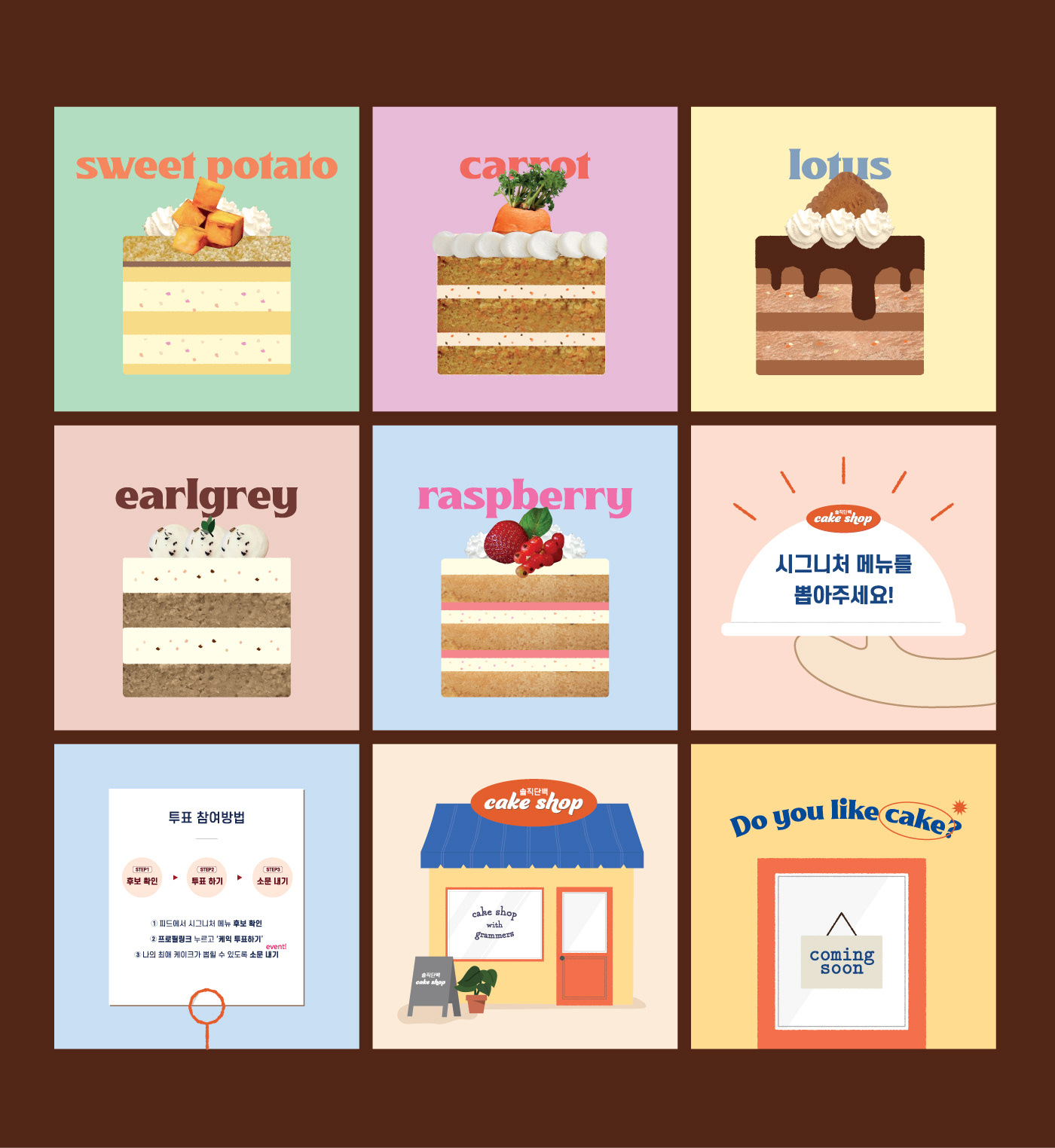 신규 단백질바 런칭 프로젝트 '케익샵' 의 일러스트와 그래픽을 작업했습니다.